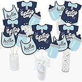- EASY PARTY DECOR: Hello Little One - Blue and Silver table decorations can be used as centerpieces when attached to the included dowels and inserted into vases or floral arrangements. They easily accent your baby shower candy buffet when you add them to apothecary jars. Table toppers are also a great addition to any photo booth. The large shaped cut outs will make your party pics instantly shareable. Hello Little One centerpiece sticks are sure to make a statement however you choose to use them!