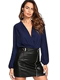 Shawhuwa Womens Sexy Casual Party Work Bodysuit with Sleeves Jumpsuit Tops (Small, Black 10) Read Review