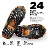 - CORROSION RESISTANT STEEL SPIKES MAKE COMMUTE EASY: 24 spikes on each sol provide you the maximum traction when hiking or trekking in woods, snow and more. Made from steel, these microspikes are ANTI-CORROSSIVE, and durable. With high COLD RESISTANCE capable of retaining elasticity at -45 degrees F, these crampons can firmly hold the snowfield and help you walk more stably.
