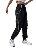 Women's Goth High Waist Lightweight Hiking Outdoor Cargo Sweatpants Pocket Side Cropped Jogger Cargo Pants with Chain (C... Read Review