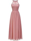 Wedtrend Halter Floral Lace Long Chiffon Wedding Bridesmaid Dress Cocktail Party Gown WT0201BlushM Read Review