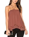 ALLY-MAGIC Womens Chiffon Halter Cami Double Spaghetti Strap Tank Top C4732 (M, Dusty Rose) Read Review