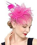 Fascinators Hat for Women Tea Party Headband Kentucky Derby Wedding Flower Cocktail Mesh Feathers Hair Clip(1-fushia) Read Review