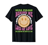 - Dear Person Behind Me You Look Great Today Lots Of Love The Person In Front Of You funny tee is perfect idea for family and friends. Show that you are nice to people who stand behind you. Grab this awesome tee to make the person behind you happy.