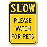 SmartSign 18 x 12 inch “Slow - Please Watch for Pets” Metal Sign, 63 mil Aluminum, 3M Laminated Engineer Grade Reflectiv... Read Review