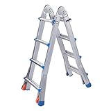 - Multi-Use Design: In order to fit your different needs, 5 different models to meet different scenes. It can be used as an A-frame ladder, an extension ladder, a staircase and 90-Degree ladder and a scaffolding system(Trestle Brackets not include). It is suitable for the decoration and cleaning of family or tool rooms; outdoor house repairing, garden dressing and other scenes.