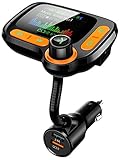 - 【TFT 1.8" Color Screen & Flexible Gooseneck & Orange Button】TFT screen is large and clear enough for you to easily read voltage, volume, song name, FM frequency, volume, etc, at daytime and night. The Bluetooth FM Transmitter gives you the versatility to change the angle of the screen with a sturdy, 360-degree gooseneck that will hold tight in the orientation you set.