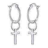 S925 Sterling Silver Jewelry Classic Cross Dangle Drop Double Circle Stud Earrings Read Review