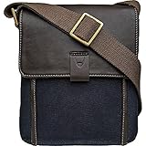 Hidesign Aiden Genuine Leather and Canvas Mini Crossbody Men/Women Messenger Bag / Travel Bag / 10.5" iPad Bag, Blue Read Review