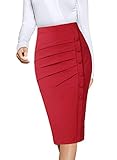 VFSHOW Womens Pleated Ruched Buttons High Waist Wear to Work Business Office Pencil Skirt 2668 RED XL Read Review