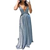 Women Sequin Wedding Dress Sleeveless Maxi Evening Prom Dress V Neck Stitching Hollow Out Backless Sling Long Dress Blue Read Review