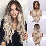 Esmee Long Ombre Brown Blonde Platinum High-Temperature Synthetic Wigs for Black Woman Water Wave Middle Part Cosplay Wi... Read Review