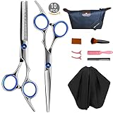 - HAIRDRESSER AT HOME: Save costly trips to the barber or hairdressers and get you hair cut and styled at home. This set includes a pair of razor sharp straight edge hairdressing scissors and a pair of thinning scissors with sharp teeth. Suitable for wet and dry haircuts as well as feathering the hair. Can also be used for beards, whether they are thick, long, coarse or soft.
