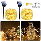 JMEXSUSS 2 Pack Solar String Lights, 8 Modes 100 LED 32.8ft Solar Waterproof Fairy Copper Wire Lights for Christmas, Bed... Read Review