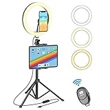 UFULA Ring Light with Stand for Tablet Cell Phone, 10" LED RingLight Tripod with Tablet Phone Holder, Selfie Circle Lamp... Read Review