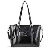 BOSTANTEN Women Leather Laptop Tote Office Shoulder Handbag Vintage Briefcase 15.6 inch Computer Work Purse Black Read Review