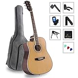 - 【Full-size Cutaway】41 inch full-size guitar with dreadnought shape ensures a powerful, driving sound. Cutaway provides easier access to the higher frets for more styles
