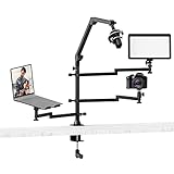 - Professional Live Broadcast Stand: Three-arm design, Video cameras, Webcam, microphone, fill light can be installed at the same time. Flexible, multi-scenario application, making it a versatile accessory for any content creator, Easily to turn the table-top into a professional live broadcast room in seconds.