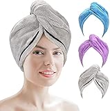 3 Pack Microfiber Hair Towel Wrap BEoffer Super Absorbent Twist Turban Fast Drying Hair Caps with Buttons Bath Loop Fast... Read Review