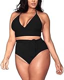 Sovoyontee Women's Black 2 Piece Plus Size High Waisted Tummy Control Swimwear Swimsuit 2XL 16 Read Review