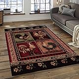 Champion Rugs Wildlife Nature Rustic Lodge Rooster Red Green Multi-Color Printed Contemporary Modern Chicken Area Rug (2... Read Review