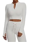 - HIGH FUNEL NECKLINE HALF ZIPPER CROP TOPS:Designed In Sculpting Seamless Ribbed Knit Fabric, Our New Long Sleeve Crop Top Features A Half Zip Neck And Long Sleeves With Thumb Holes For A Sporty Finish. Complete With A Strengthening Underband And Ribbed Finish All Over. No Padded ,For A Sporty Finish, This Lightweight Gym Top Allows You To Move With Complete Freedom Throughout Your Workout.