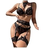 Women's Sexy Lace Lingerie Set with Garter Belt, Sling Bra Briefs Panties 2PC Suit Teddy Corset Bralettes Underwear Read Review