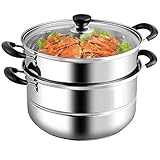 Steamer Pot with Transparent lid, 2 Tier 11 inch Big Stainless Steel Steamer Cookware Pot Saucepot Multi-layer Boiler St... Read Review
