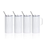 PYD Life 4 PCS Sublimation Blank Skinny Tumbler 16 OZ White Mugs with Handle and Straw,Stainless Steel Coffee Travel Str... Read Review