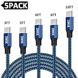 USB C Cable,XIAE 5Pack (3/3/6/6/10FT) Nylon Braided Fast Charging Cable Aluminum Housing Compatible with Samsung Galaxy... Read Review