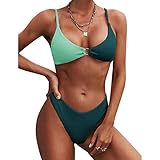 - The ribbed bikini set features with colorblock o-ring triangle top and high cut leg cheeky bottom, so it makes you look more charming and sexy and perfectly show off your curve.